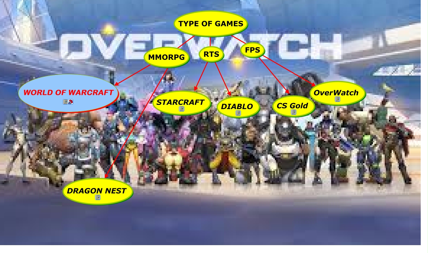 This Concept Map, created with IHMC CmapTools, has information related to: Jeffery Ng, RTS ???? STARCRAFT, FPS ???? OverWatch, MMORPG ???? DRAGON NEST, TYPE OF GAMES ???? MMORPG, TYPE OF GAMES ???? RTS, FPS ???? CS Gold, TYPE OF GAMES ???? FPS, RTS ???? DIABLO, TYPE OF GAMES ???? WORLD OF WARCRAFT