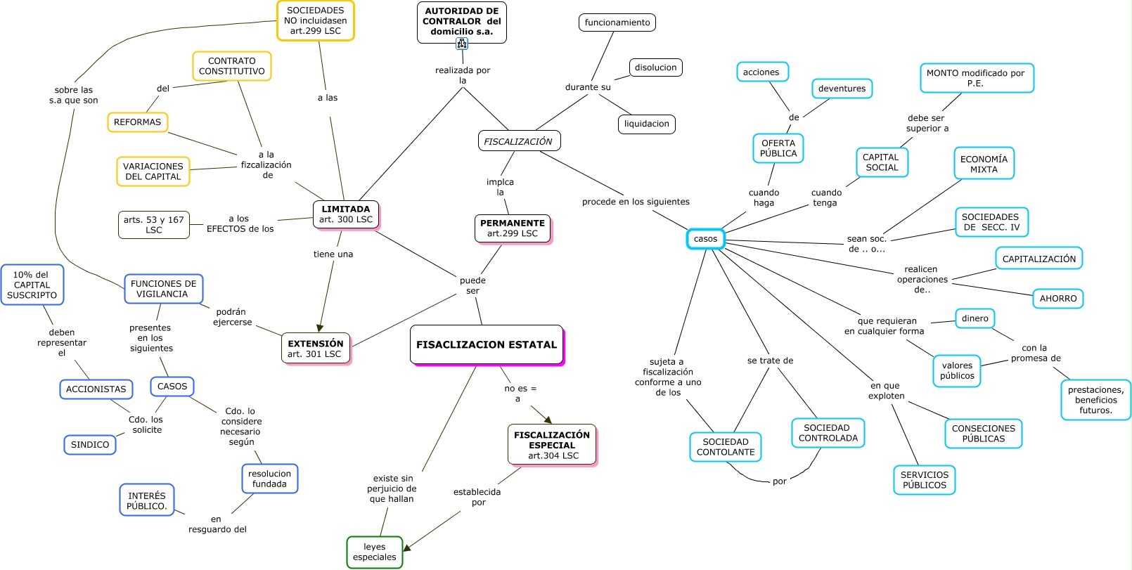 Este Cmap, tiene información relacionada con: P9 FISCALIZACION ESTATAL SA, casos en que exploten SERVICIOS PÚBLICOS, casos realicen operaciones de.. CAPITALIZACIÓN, FISACLIZACION ESTATAL no es = a FISCALIZACIÓN ESPECIAL art.304 LSC, FISACLIZACION ESTATAL existe sin perjuicio de que hallan leyes especiales, EXTENSIÓN art. 301 LSC podrán ejercerse FUNCIONES DE VIGILANCIA, FISACLIZACION ESTATAL puede ser LIMITADA art. 300 LSC, CAPITAL SOCIAL debe ser superior a MONTO modificado por P.E., casos en que exploten CONSECIONES PÚBLICAS, PERMANENTE art.299 LSC implca la FISCALIZACIÓN, OFERTA PÚBLICA de deventures, casos sean soc. de .. o... SOCIEDADES DE SECC. IV, casos realicen operaciones de.. AHORRO, FISCALIZACIÓN durante su disolucion, LIMITADA art. 300 LSC a los EFECTOS de los arts. 53 y 167 LSC, SOCIEDAD CONTROLADA por SOCIEDAD CONTOLANTE, resolucion fundada en resguardo del INTERÉS PÚBLICO., OFERTA PÚBLICA de acciones, casos cuando haga OFERTA PÚBLICA, FISCALIZACIÓN durante su funcionamiento, LIMITADA art. 300 LSC a la fizcalización de VARIACIONES DEL CAPITAL