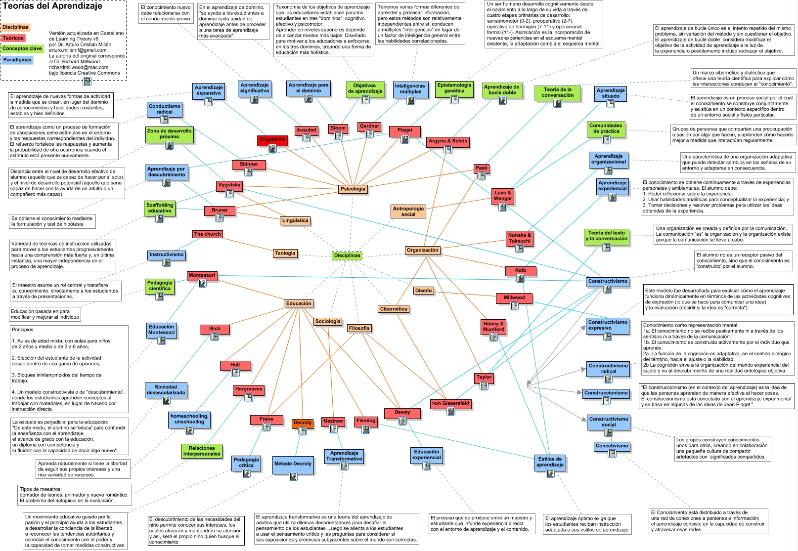 Este Cmap, tiene información relacionada con: Teorias de Aprendizaje, Aprendizaje para el dominio En el aprendizaje de dominio, "se ayuda a los estudiantes a dominar cada unidad de aprendizaje antes de proceder a una tarea de aprendizaje más avanzada"., Vygotsky Constructivismo, Skinner Conductismo radical, homeschooling, unschooling Aprenda naturalmente si tiene la libertad de seguir sus propios intereses y una rica variedad de recursos., Constructivismo El alumno no es un receptor pasivo del conocimiento, sino que el conocimiento es 'construido' por el alumno., Disciplinas son Filosofía, Disciplinas son Organización, Disciplinas son Cibernética, Montessori Constructivismo, Psicología Skinner, Teología The church, Gardner Inteligencias múltiples, Lingüística Vygotsky, Aprendizaje expansivo El aprendizaje de nuevas formas de actividad a medida que se crean, en lugar del dominio de conocimientos y habilidades existentes, estables y bien definidos., Diseño Millwood, Piaget Epistemología genética, Pask Teoría de la conversación, Constructivismo Constructivismo expresivo, Ausubel Aprendizaje significativo, Aprendizaje situado El aprendizaje es un proceso social por el cual el conocimiento se construye conjuntamente y se sitúa en un contexto específico dentro de un entorno social y físico particular.