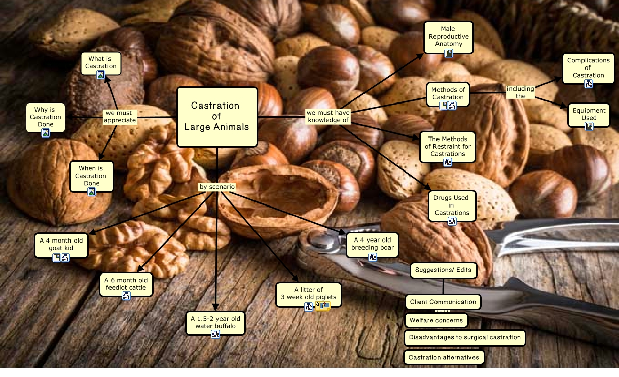 This Concept Map, created with IHMC CmapTools, has information related to: Lab 4 Castration, Castration of Large Animals by scenario A 4 month old goat kid, Methods of Castration including the Complications of Castration, Castration of Large Animals we must have knowledge of Male Reproductive Anatomy, Castration of Large Animals by scenario A 4 year old breeding boar, Castration of Large Animals we must have knowledge of The Methods of Restraint for Castrations, Castration of Large Animals we must have knowledge of Methods of Castration, Castration of Large Animals we must have knowledge of Drugs Used in Castrations, Castration of Large Animals we must appreciate When is Castration Done, Castration of Large Animals we must appreciate What is Castration, Castration of Large Animals we must appreciate Why is Castration Done, Castration of Large Animals by scenario A 6 month old feedlot cattle, Suggestions/ Edits ???? Client Communication, Methods of Castration including the Equipment Used, Castration of Large Animals by scenario A litter of 3 week old piglets, Castration of Large Animals by scenario A 1.5-2 year old water buffalo