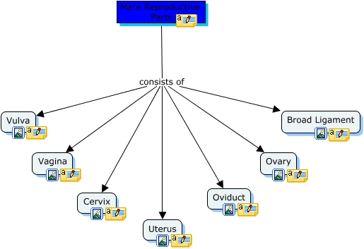 This Concept Map, created with IHMC CmapTools, has information related to: Mare Reproductive Anatomy, Mare Reproductive Parts consists of Uterus, Mare Reproductive Parts consists of Broad Ligament, Mare Reproductive Parts consists of Oviduct, Mare Reproductive Parts consists of Cervix, Mare Reproductive Parts consists of Vagina, Mare Reproductive Parts consists of Ovary, Mare Reproductive Parts consists of Vulva