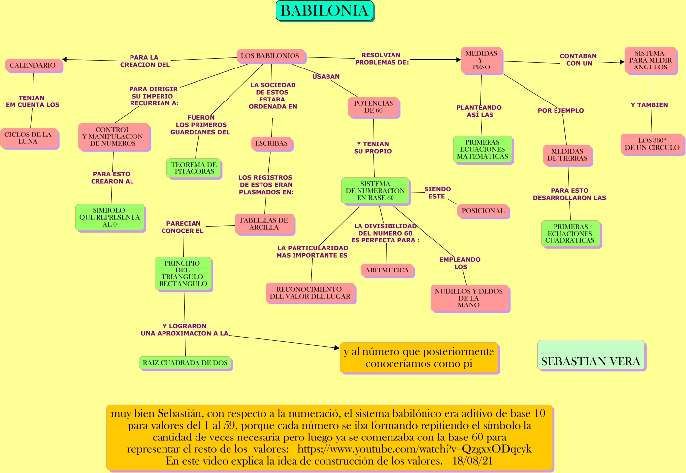 This Concept Map, created with IHMC CmapTools, has information related to: BABILONIA, SISTEMA DE NUMERACION EN BASE 60 EMPLEANDO LOS NUDILLOS Y DEDOS DE LA MANO, LOS BABILONIOS RESOLVIAN PROBLEMAS DE: MEDIDAS Y PESO, CALENDARIO TENIAN EM CUENTA LOS CICLOS DE LA LUNA, PRINCIPIO DEL TRIANGULO RECTANGULO Y LOGRARON UNA APROXIMACION A LA y al número que posteriormente conoceríamos como pi, SISTEMA PARA MEDIR ANGULOS Y TAMBIEN LOS 360° DE UN CIRCULO, POTENCIAS DE 60 Y TENIAN SU PROPIO SISTEMA DE NUMERACION EN BASE 60, LOS BABILONIOS FUERON LOS PRIMEROS GUARDIANES DEL TEOREMA DE PITAGORAS, MEDIDAS Y PESO POR EJEMPLO MEDIDAS DE TIERRAS, MEDIDAS Y PESO CONTABAN CON UN SISTEMA PARA MEDIR ANGULOS, LOS BABILONIOS PARA DIRIGIR SU IMPERIO RECURRIAN A: CONTROL Y MANIPULACION DE NUMEROS, TABLILLAS DE ARCILLA PARECIAN CONOCER EL PRINCIPIO DEL TRIANGULO RECTANGULO, SISTEMA DE NUMERACION EN BASE 60 SIENDO ESTE POSICIONAL, LOS BABILONIOS LA SOCIEDAD DE ESTOS ESTABA ORDENADA EN ESCRIBAS, MEDIDAS Y PESO PLANTEANDO ASÍ LAS PRIMERAS ECUACIONES MATEMATICAS, CONTROL Y MANIPULACION DE NUMEROS PARA ESTO CREARON AL SIMBOLO QUE REPRESENTA AL 0, LOS BABILONIOS PARA LA CREACION DEL CALENDARIO, LOS BABILONIOS USABAN POTENCIAS DE 60, SISTEMA DE NUMERACION EN BASE 60 LA DIVISIBILIDAD DEL NUMERO 60 ES PERFECTA PARA : ARITMETICA, ESCRIBAS LOS REGISTROS DE ESTOS ERAN PLASMADOS EN: TABLILLAS DE ARCILLA, SISTEMA DE NUMERACION EN BASE 60 LA PARTICULARIDAD MAS IMPORTANTE ES RECONOCIMIENTO DEL VALOR DEL LUGAR