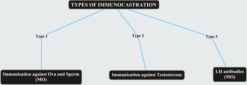 This Concept Map, created with IHMC CmapTools, has information related to: Types of immunocastration, TYPES OF IMMUNOCASTRATION Type 3 LH antibodies (MO), TYPES OF IMMUNOCASTRATION Type 1 Immunization against Ova and Sperm (MO), TYPES OF IMMUNOCASTRATION Type 2 Immunization against Testosterone