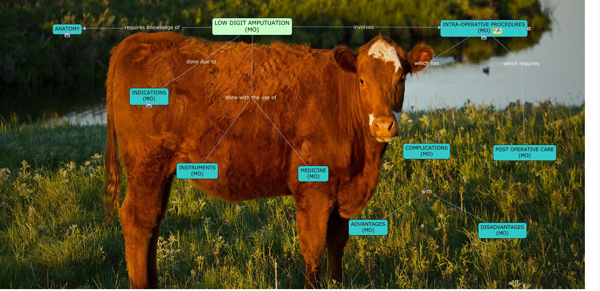 This Concept Map, created with IHMC CmapTools, has information related to: Low Digit Amputation, INTRA-OPERATIVE PROCEDURE (MO) which has COMPLICATIONS (MO), LOW DIGIT AMPUTUATION (MO) done with the use of INSTRUMENTS (MO), LOW DIGIT AMPUTUATION (MO) done due to INDICATIONS (MO), INTRA-OPERATIVE PROCEDURE (MO) requires SITE PREPARATION (MO), INTRA-OPERATIVE PROCEDURE (MO) which requires POST OPERATIVE CARE (MO), INTRA-OPERATIVE PROCEDURE (MO) requires RESTRAINT (MO), COMPLICATIONS (MO) with DISADVANTAGES (MO), LOW DIGIT AMPUTUATION (MO) done with the use of MEDICINE (MO), COMPLICATIONS (MO) with ADVANTAGES (MO), LOW DIGIT AMPUTUATION (MO) involves INTRA-OPERATIVE PROCEDURE (MO), LOW DIGIT AMPUTUATION (MO) requires knowledge of ANATOMY, INTRA-OPERATIVE PROCEDURE (MO) requires ANESTHESIA (MO)