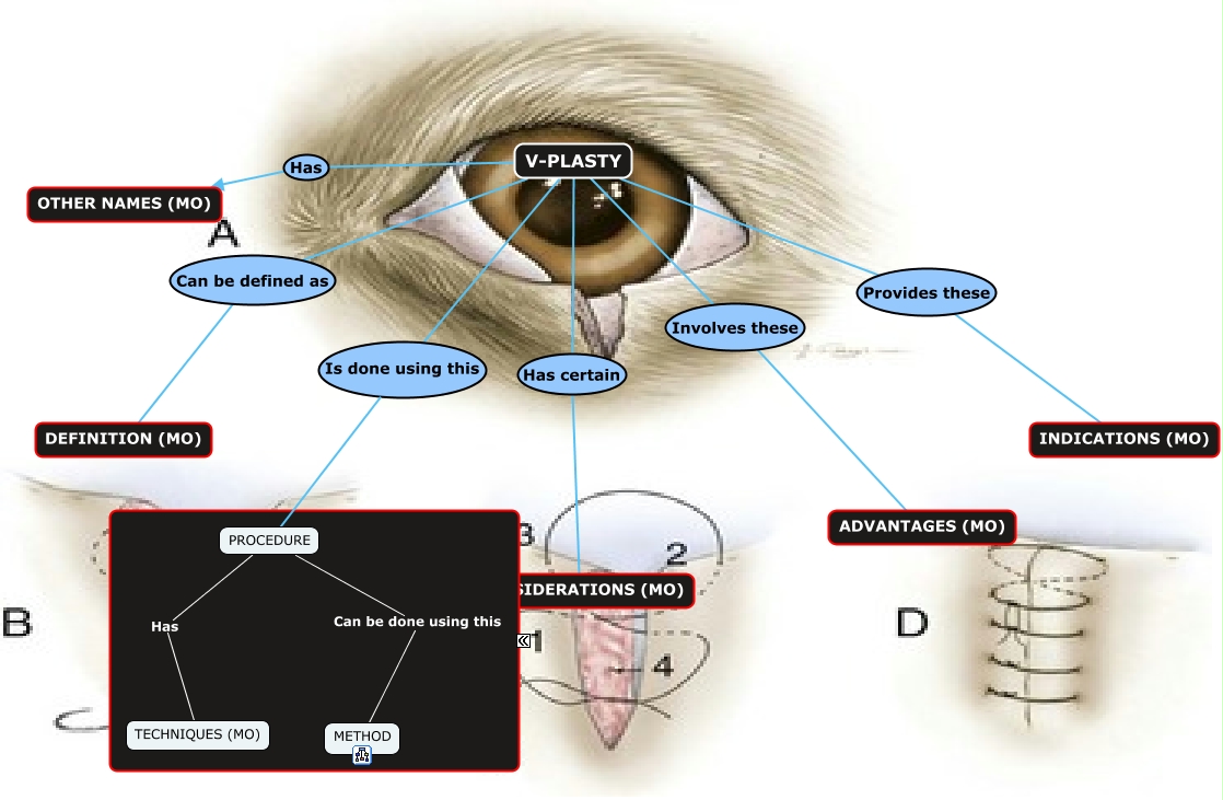 This Concept Map, created with IHMC CmapTools, has information related to: V-Plasty, PROCEDURE Can be done using this METHOD, V-PLASTY Has certain CONSIDERATIONS (MO), V-PLASTY Has OTHER NAMES (MO), PROCEDURE Has TECHNIQUES (MO), V-PLASTY Provides these INDICATIONS (MO), V-PLASTY Can be defined as DEFINITION (MO), V-PLASTY Involves these ADVANTAGES (MO), V-PLASTY Is done using this PROCEDURE