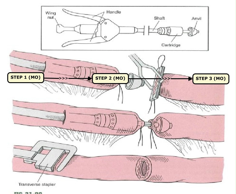 This Concept Map, created with IHMC CmapTools, has information related to: Inverting End to End Stapled Anastomosis Procedure, STEP 2 (MO) >>> STEP 3 (MO), STEP 1 (MO) >>> STEP 2 (MO)
