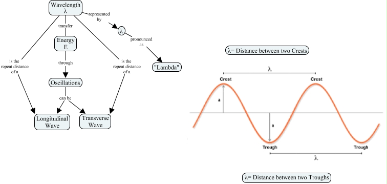 This Concept Map, created with IHMC CmapTools, has information related to: Wavelength, Energy E through Oscillations, Wavelength λ is the repeat distance of a Longitudinal Wave, Wavelength λ is the repeat distance of a Transverse Wave, λ pronounced as "Lambda", Wavelength λ represented by λ, Wavelength λ transfer Energy E, Oscillations can be Longitudinal Wave, Oscillations can be Transverse Wave