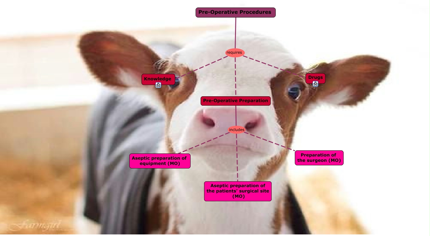 This Concept Map, created with IHMC CmapTools, has information related to: Pre-Operative Procedures, Pre-Operative Procedures requires Drugs, Pre-Operative Preparation includes Aseptic preparation of equipment (MO), Pre-Operative Preparation includes Preparation of the surgeon (MO), Pre-Operative Preparation includes Aseptic preparation of the patients' surgical site (MO), Pre-Operative Procedures requires Pre-Operative Preparation, Pre-Operative Procedures requires Knowledge