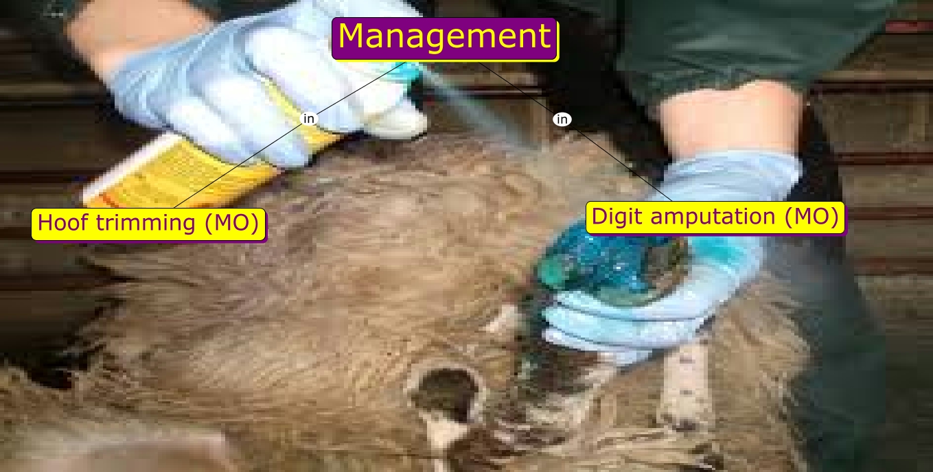 This Concept Map, created with IHMC CmapTools, has information related to: Post Operative- Mangement, Management in Hoof trimming (MO), Management in Digit amputation (MO)