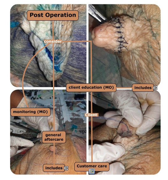 This Concept Map, created with IHMC CmapTools, has information related to: Post operation, Post Operation consider general aftercare, client education (MO) precautions (MO), client education (MO) prognosis (MO), Post Operation consider monitoring (MO), client education (MO) isolation (MO), client education (MO) Client Customer care, general aftercare antimicrobial therapy (MO), general aftercare analgesia (MO), Post Operation consider client education (MO), general aftercare suture removal (MO)
