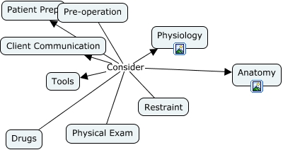 This Concept Map, created with IHMC CmapTools, has information related to: Pre-operation_1, Pre-operation Consider Anatomy, Pre-operation Consider Tools, Pre-operation Consider Patient Prep, Pre-operation Consider Restraint, Pre-operation Consider Drugs, Pre-operation Consider Physiology, Pre-operation Consider Physical Exam, Pre-operation Consider Client Communication