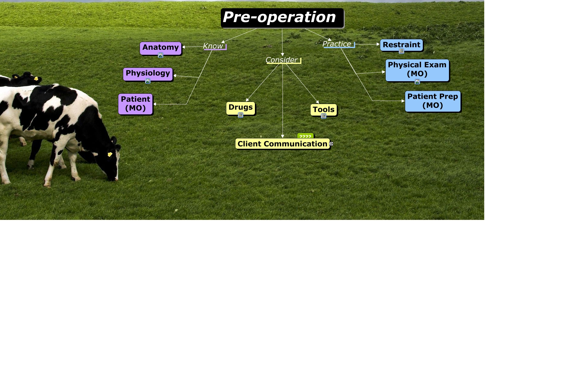 This Concept Map, created with IHMC CmapTools, has information related to: Pre-operation_7, Pre-operation Practice Physical Exam (MO), Pre-operation Know Physiology, Pre-operation Consider Tools, Pre-operation Practice Patient Prep (MO), Client Communication Discuss with client: 2. Post-op complications (MO), Client Communication Discuss with client: 3. Post-op care (MO), Client Communication Discuss with client: 4. Cost associated (MO), Client Communication Discuss with client: 1. Treatment options (MO), Client Communication Discuss with client: 5. Consent, Pre-operation Know Anatomy, Pre-operation Practice Restraint, Pre-operation Practice Restraint, Pre-operation Consider Drugs, Pre-operation Know Patient (MO), Pre-operation Consider Client Communication
