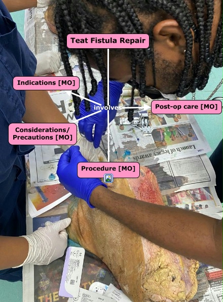 This Concept Map, created with IHMC CmapTools, has information related to: Teat fistula repair - backup, Teat Fistula Repair involves Procedure [MO], Teat Fistula Repair involves Considerations/ Precautions [MO], Teat Fistula Repair involves Post-op care [MO], Teat Fistula Repair involves Indications [MO]