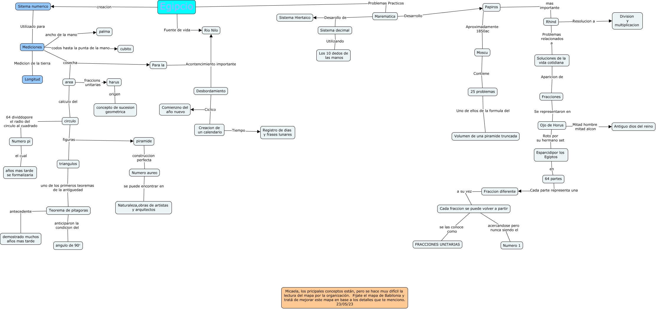 Este Cmap, tiene información relacionada con: egipto, 25 problemas Uno de ellos de la formula del Volumen de una piramide truncada, Esparcidipor los Egiptos en 64 partes, Egipcio creacion Sitema numerico, piramide construccion perfecta Numero aureo, Papiros mas importante Rhind, Sistema decimal Utilizando Los 10 dedos de las manos, Marematica Desarollo de Sistema decimal, Desbordamiento Ciclico Comienzno del año nuevo, Sitema numerico Utilizado para Mediciones, area calculo del circulo, Mediciones codos hasta la punta de la mano cubito, Marematica Desarollo de Sistema Hiertaico, Egipcio Fuente de vida Rio Nilo, Moscu Contiene 25 problemas, Ojo de Horus Mitad hombre mitad alcon Antiguo dios del reino, Cada fraccion se puede volver a partir se las conoce como FRACCIONES UNITARIAS, harus origen concepto de sucesion geometrica, area fraccions unitarias harus, Numero pi el cual años mas tarde se formalizaria, Fracciones Se representaron en Ojo de Horus