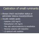 Animal terms related to castration.png Background.jpg bactrovet.jpeg banixin.jpeg Burdizzo.png Burdizzo Video.url Callicrate Bander Video.url Castration_aftercare_instructions.pdf Cattle.jpg Caudal epidural.jpg Caudal epidural (video).url CAUDAL EPIDURAL NERVE BLOCK.docx Chemical.png Complications.png day 1.jpeg day 3.jpeg Distal Paravertebral.png DISTAL PARAVERTEBRAL NERVE BLOCK.docx Drug Table.docx Elastrator Viedo.url Emasculator Steps.png Emasculator Video.mp4 H.docx Horse.jpg LAB 3.cmap Male Reproductive Sys.jpg Newberry Castration Steps.png Newberry Castration Technique.png penstrep.jpeg Pig.jpg Piglet Castration.png Points to Note.png Procedure.png Proper placement of elastic ring.png Proximal Paravertebral.jpg Proximal paravertebral (video).url PROXIMAL PARAVERTEBRAL NERVE BLOCK.docx RESTRAINT METHODS USED.docx Sheep&Goat.jpg Spermatic cord block (video).url SPERMATIC CORD NERVE BLOCK.docx Strangle Knot Demonstration.mp4 Tail flaccid after our block was successfully done.mp4 Testicle.jpg the patient.jpg Ways in which the Scrotum is Incised.png