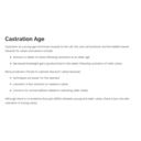 Acute Pain_Welfare.png Advantages + Disadvantages of Castration Techniques.jpg Advantages and disadvantages of Immunocastration.png Age for castration.png Alternatives for Sx Castration of Piglets without anaesthesia.png Analgesia reccomendation.png ASA Classification Vet Med.png ASA Grading.jpg Australia Animal Welfare standards.png Australian Animal Welfare Standards and Guidelines for Cattle.url background 1.jpg Background 2.jpg background 3.jpg background 5.jpg Bactrovet evidence.url bactrovet spray.jpg books.png BURDIZZO.png BURDIZZO VS BANDING.url calf clip art.png Calf with rope halter.jpeg Castration Age information.png Castration clip art.png Castration Complications.png Castration picture.jpg Cattle indications.png Caudal Epidural on Bullcalf 423.mp4 Caudal Epidural on Bullcalf 423 short vid.mp4 Chemical Castration Techniques.jpg Closed Castration Techniques.jpg Common Castration methods.png Common castration methods sheep and goat.png Common castration methods swine.png complications and action flowchart.png Copy of complications and action flowchart.png Cryptochidism.jpeg Cutting of distal third of scrotum on bullcalf for open open castration.mp4 Distal Paravertebral Block.url DISTAL paravertebral Nerves blocked at Lateral Aspect.png Elastrator tool.png Emasculatome clip art.png emasculator.png Emasculator.jpeg Emasculator and Description.png emasculator clamping.mp4 Emasculator in use.mp4 emasculator placement.png emasculator removal.mp4 Emasculator with ratchet clip art.png Epidural Reccomendation.png exposing testes.mp4 Exposing testes.png FACTSHEET.url flunixin.jpeg Follow up day 1.jpeg Follow up day 1 after treatment.jpeg Follow up day 2.jpeg Follow up day 3.jpeg Follow up day 3, another angle.jpeg Follow up day 4.jpeg Granulation tissue.url GROUP 1 LAB 3 Cattle Castration.cmap henderson.png Henderson Tool Castration.url herniation.jpeg Immunocastration affect in boar.png Immunocastration affect in boar testes.png Immunocastration in pigs.png Ingunal Hernia in calf.jpeg Injection of Lidocaine into Spermatic cord bullcalf 423.mp4 Literature Review on the Welfare Implications of Castration.png LOCAL Anesthesia and Analgesia recomendation.png Matabecheras spray evidence.url matebecheiras spray.jpg money clip art.png newberry.jpg Newberry castration.url Open Castration Techniques.jpg Paravertebral Nerve block nerves anesthetized.png Physical Exam.png Physiologic stress_Welfare.png Post op bactivet.MOV Post op matebechieras.MOV Post op reccomendations.png protest clip art.png Proximal Paravertebral block.url Reasons for castration.png Recognizing Pain in herd Cattle.jpg Relevant Anatomoy Explained.png Reproductive tract BUCK.jpg Reproductive tract BULL.png Reproductive tract RAM.png Reproductive tract SWINE.jpg Ritchey Nipper.url RITCHEY NIPPER.png rubber rings complication.png scalpel clip art.png Sedation Reccomendatioon.png Sheep and Goat Castration.png Solution to Ethical and welfare concerns of castration in cattle.png strangle knot.mp4 Strangle knot.url Strangle knot youtube.url Strangle youtube.url Surgical Technique for BOARS.png Surgical Technique for piglets.png Swine Indicationf for castration.png Table of Drugs and Doses.png Testicle only bullcalf 423.jpg Testicle removed.jpg Use of Burdizzo on Bullcalf 423.mp4 Water Buffalo scrotum.png Welfare__Lidocaine Infused band_alternative.webp Welfare Implications of Castration of Cattle.url Welfare Implications of Cattle Castration.url Welfare Implications of Swine Castration.url Welfare issues_Pig Castration.png Xylazine and ketamine products.jpeg