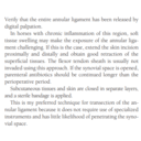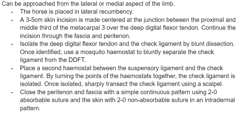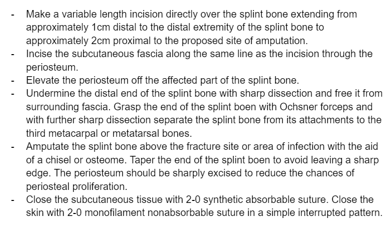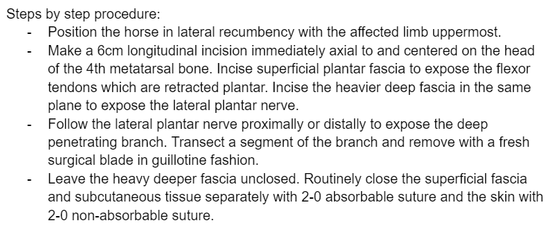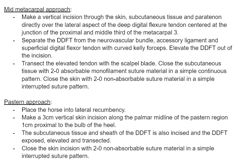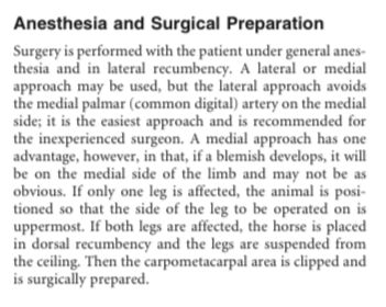 Anaesthesia for splint bone removal.jpg Annular Ligament.png Annular ligament desmotomy landmarks.png Annular ligament desmotomy steps (1).png Annular ligament desmotomy steps (2).png ASNB.docx background.jpg DDFT.jpg DDFT anaesthesia.jpg DDFT Anatomy website.url Deep Branch of Lateral Palmar nerve.png Deep Branch of Lateral Plantar Nerve.docx Deep digital flexor tenotomy landmarks.png Deep digital flexor tenotomy procedure.png Desmotomy.cmap Desmotomy background.jpg Distal Limb.jpg Distal limb anatomy.jpg Foot Examination.docx H4PNB.docx inferior check desmotomy anaesthesia.jpg Inferior Check Ligament.jpg Inferior check ligament desmotomy landmarks.png Inferior check ligament desmotomy procedure.png Lab 9 Background.jpg LAMENESS EVALUATION.docx Limb Deformities in Foal.url Medial patella desmotomy anaesthesia.jpg Medial Patella Ligament.jpeg Medial patellar ligament desmotomy landmarks (1).png Medial patellar ligament desmotomy landmarks (2).png Medial patellar ligament desmotomy steps.png Nerve Blocks.url Neurectomy.cmap Neurectomy Background.jpg Neurectomy of the deep branch of the lateral plantar nerve landmarks.png Neurectomy of the deep branch of the lateral plantar nerve procedure.png Palmar Digital Nerve.jpg Palmar Digital Neurectomy (video).url Palmar Digital Neurectomy Landmarks (image).png Palmar Digital Neurectomy Procedure.png Patient Evaluation & Restraint.docx Patient Surgical Preparation.docx PDNB.docx Periosteal Stripping Image.png Periosteal Transection.cmap Periosteal Transection Procedure.png Spint Bone Anatomy.url Splint bone background.jpg Splint Bone Removal.cmap Splint bone removal landmarks.png Splint bone removal procedure.png Splint Bones.jpeg superior check desmotomy anaesthesia.jpg Superior Check Ligament.gif Superior check ligament desmotomy landmarks.png Superior check ligament desmotomy procedure.png Tenotomy.cmap Tenotomy Background.png