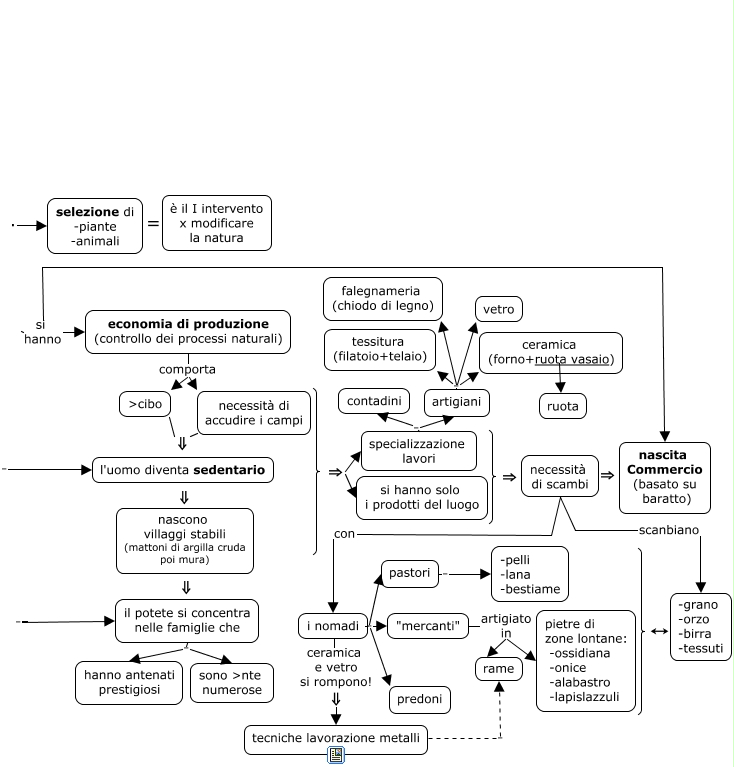 </mtext> </mfenced> </mrow> </math> ⇒ specializzazione lavori, specializzazione lavori . contadini, "mercanti" artigiato in rame, economia di produzione (controllo dei processi naturali) comporta >cibo, nascono villaggi stabili (mattoni di argilla cruda poi mura) ⇓ il potete si concentra nelle famiglie che, pastori . -pelli -lana -bestiame, il potete si concentra nelle famiglie che . sono >nte numerose, artigiani . falegnameria (chiodo di legno), i nomadi . pastori, <math xmlns="http://www.w3.org/1998/Math/MathML"> <mrow> <mfenced open="" close="}"> <mtext>