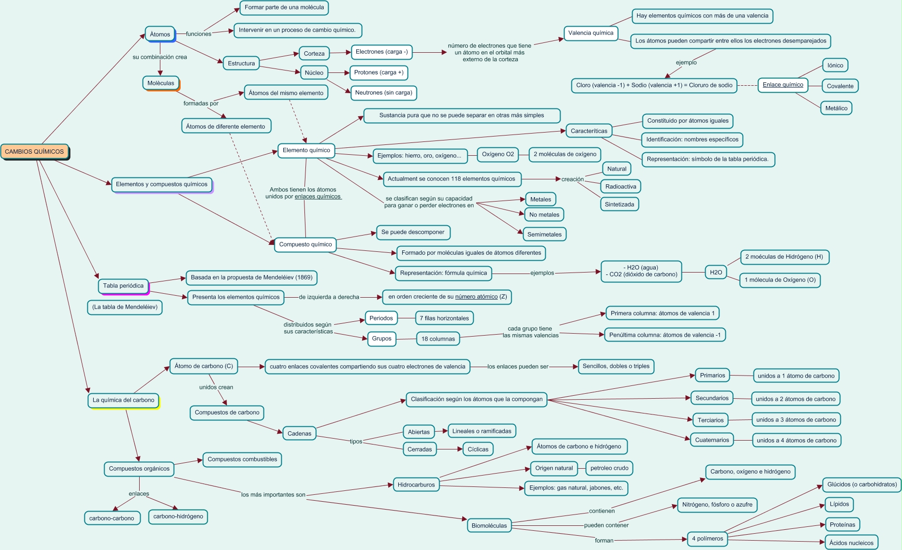 Este Cmap, tiene información relacionada con: CAMBIO QUÍMICOS, Compuestos orgánicos los más importantes son Hidrocarburos, Hidrocarburos Origen natural, Elemento químico se clasifican según su capacidad para ganar o perder electrones en Metales, H2O 1 mólecula de Oxígeno (O), Elemento químico Caracteríticas, Presenta los elementos químicos de izquierda a derecha en orden creciente de su número atómico (Z), Átomos del mismo elemento Elemento químico, Estructura Núcleo, Caracteríticas Representación: símbolo de la tabla periódica., Elemento químico Ejemplos: hierro, oro, oxígeno..., Los átomos pueden compartir entre ellos los electrones desemparejados ejemplo Cloro (valencia -1) + Sodio (valencia +1) = Cloruro de sodio, Cadenas tipos Abiertas, Cuaternarios unidos a 4 átomos de carbono, Presenta los elementos químicos distribuidos según sus características Grupos, Primarios unidos a 1 átomo de carbono, - H2O (agua) - CO2 (dióxido de carbono) H2O, Compuestos orgánicos enlaces carbono-carbono, Actualment se conocen 118 elementos químicos creación Natural, Àtomos funciones Intervenir en un proceso de cambio químico., H2O 2 moéculas de Hidrógeno (H)