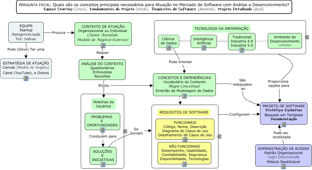 Esse mapa conceitual, produzido no IHMC CmapTools, tem a informação relacionada a: ES3-Competências, EQUIPE Startup Autogerenciada Ver: Sebrae Procura CONTEXTO DE ATUAÇÃO Organizacional ou Individual Cliente Atendido Modelo de Negócio (Canvas), EQUIPE Startup Autogerenciada Ver: Sebrae Pode (Deve) Ter uma ESTRATÉGIA DE ATUAÇÃO Canvas (Modelo de Negócio) Canal (YouTube), e Outros, PROBLEMAS E OPORTUNIDADES Conduzem para SOLUÇÕES E INICIATIVAS, Ciência de Dados Tradicional Industria 4.0 Industria 5.0, CONCEITOS E DEPENDÊNCIAS Vocabulário do Contexto Mapa Conceitual Embrião da Modelagem de Dados ????, CONCEITOS E DEPENDÊNCIAS Vocabulário do Contexto Mapa Conceitual Embrião da Modelagem de Dados São adequados ao PROJETO DE SOFTWARE Protótipo Evolutivo Baseado em Template Documentação, CONTEXTO DE ATUAÇÃO Organizacional ou Individual Cliente Atendido Modelo de Negócio (Canvas) Requer ANÁLISE DO CONTEXTO Questionários Entrevistas Reuniões, TECNOLOGIA DA INFORMAÇÃO Proporciona opções para PROJETO DE SOFTWARE Protótipo Evolutivo Baseado em Template Documentação, Tradicional Industria 4.0 Industria 5.0 Ambiente de Desenvolvimento Camadas, ???? Configuram PROJETO DE SOFTWARE Protótipo Evolutivo Baseado em Template Documentação, ANÁLISE DO CONTEXTO Questionários Entrevistas Reuniões Elicita Histórias de Usuários, ANÁLISE DO CONTEXTO Questionários Entrevistas Reuniões Elicita CONCEITOS E DEPENDÊNCIAS Vocabulário do Contexto Mapa Conceitual Embrião da Modelagem de Dados, SOLUÇÕES E INICIATIVAS Se tornam ????, Ciência de Dados Pode orientar CONCEITOS E DEPENDÊNCIAS Vocabulário do Contexto Mapa Conceitual Embrião da Modelagem de Dados