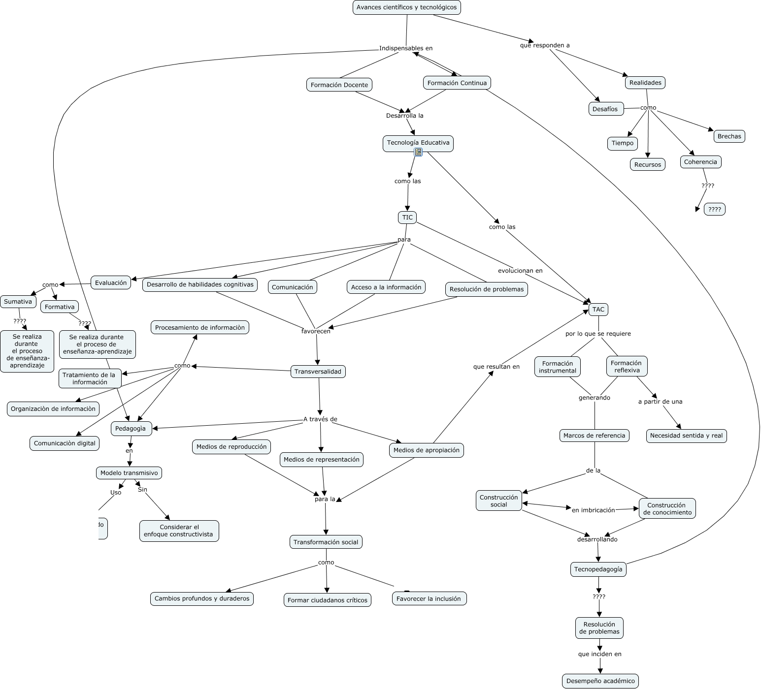 Este Cmap, tiene información relacionada con: Ejercicio grupal, Evaluación como Formativa, Realidades como Tiempo, Tecnopedagogía ???? Resolución de problemas, TIC para Comunicación, Avances científicos y tecnológicos Indispensables en Formación Docente, Marcos de referencia de la Construcción de conocimiento, Formativa ???? Se realiza durante el proceso de enseñanza-aprendizaje, Realidades como Coherencia, Avances científicos y tecnológicos que responden a Realidades, Tecnología Educativa como las TAC, TIC para Resolución de problemas, Avances científicos y tecnológicos Indispensables en Pedagogìa, Transversalidad A través de Medios de representación, Sumativa ???? Se realiza durante el proceso de enseñanza- aprendizaje, Evaluación como Sumativa, Medios de reproducción para la Transformación social, Pedagogìa en Modelo transmisivo, Desafíos como Coherencia, Transversalidad A través de Medios de reproducción, Comunicación favorecen Transversalidad