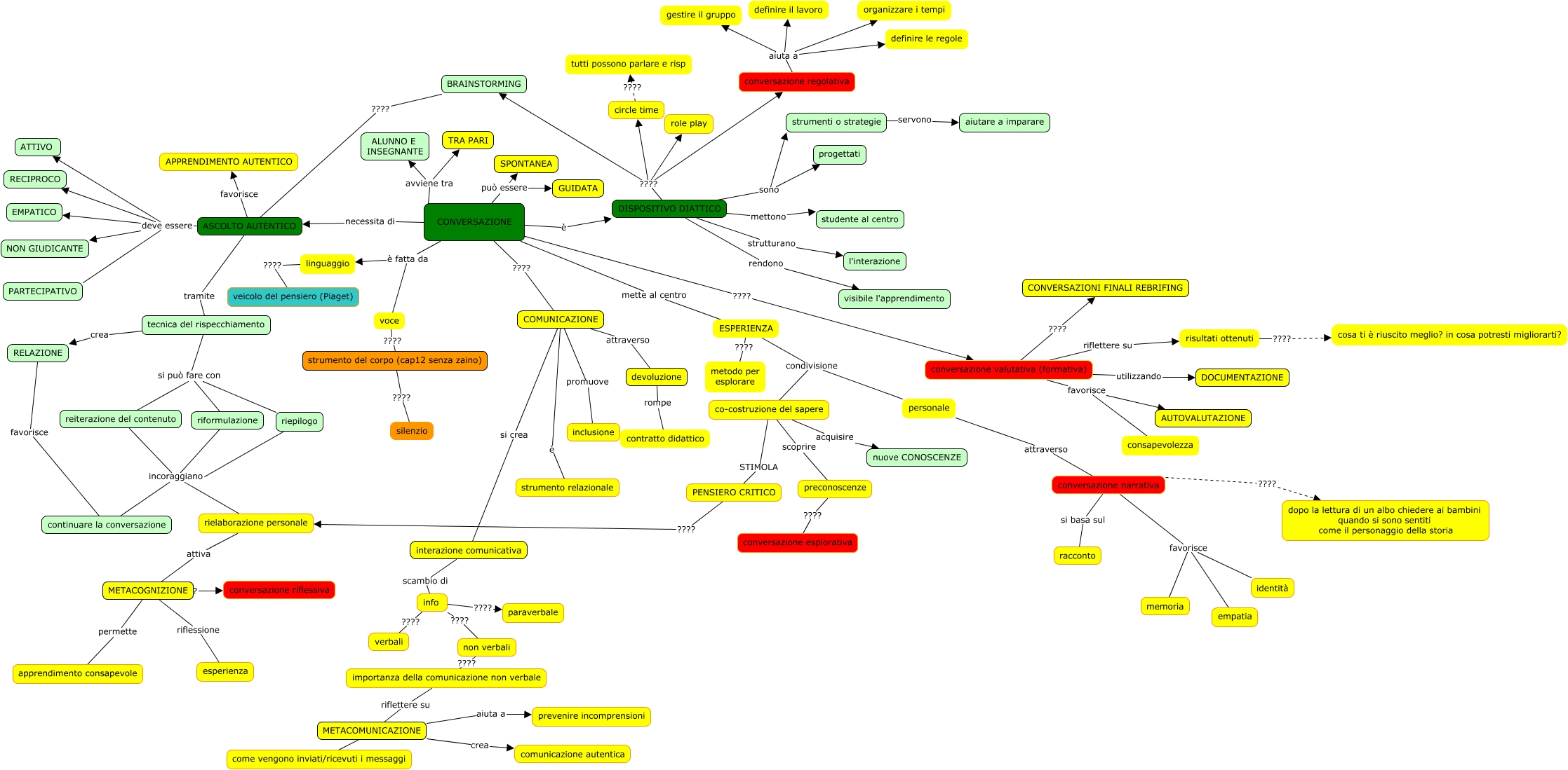 Questa Cmap, creata con IHMC CmapTools, contiene informazioni relative a: silvia mad conversazione gigante, riformulazione incoraggiano rielaborazione personale, DISPOSITIVO DIATTICO sono strumenti o strategie, ASCOLTO AUTENTICO deve essere ATTIVO, conversazione regolativa aiuta a definire il lavoro, conversazione narrativa favorisce empatia, voce ???? strumento del corpo (cap12 senza zaino), CONVERSAZIONE è DISPOSITIVO DIATTICO, METACOGNIZIONE permette apprendimento consapevole, conversazione regolativa aiuta a gestire il gruppo, DISPOSITIVO DIATTICO ???? conversazione regolativa, ASCOLTO AUTENTICO tramite tecnica del rispecchiamento, DISPOSITIVO DIATTICO ???? BRAINSTORMING, CONVERSAZIONE può essere SPONTANEA, DISPOSITIVO DIATTICO ???? circle time, conversazione regolativa aiuta a organizzare i tempi, risultati ottenuti ???? cosa ti è riuscito meglio? in cosa potresti migliorarti?, tecnica del rispecchiamento si può fare con riepilogo, circle time ???? tutti possono parlare e risp, DISPOSITIVO DIATTICO mettono studente al centro, ESPERIENZA condivisione personale