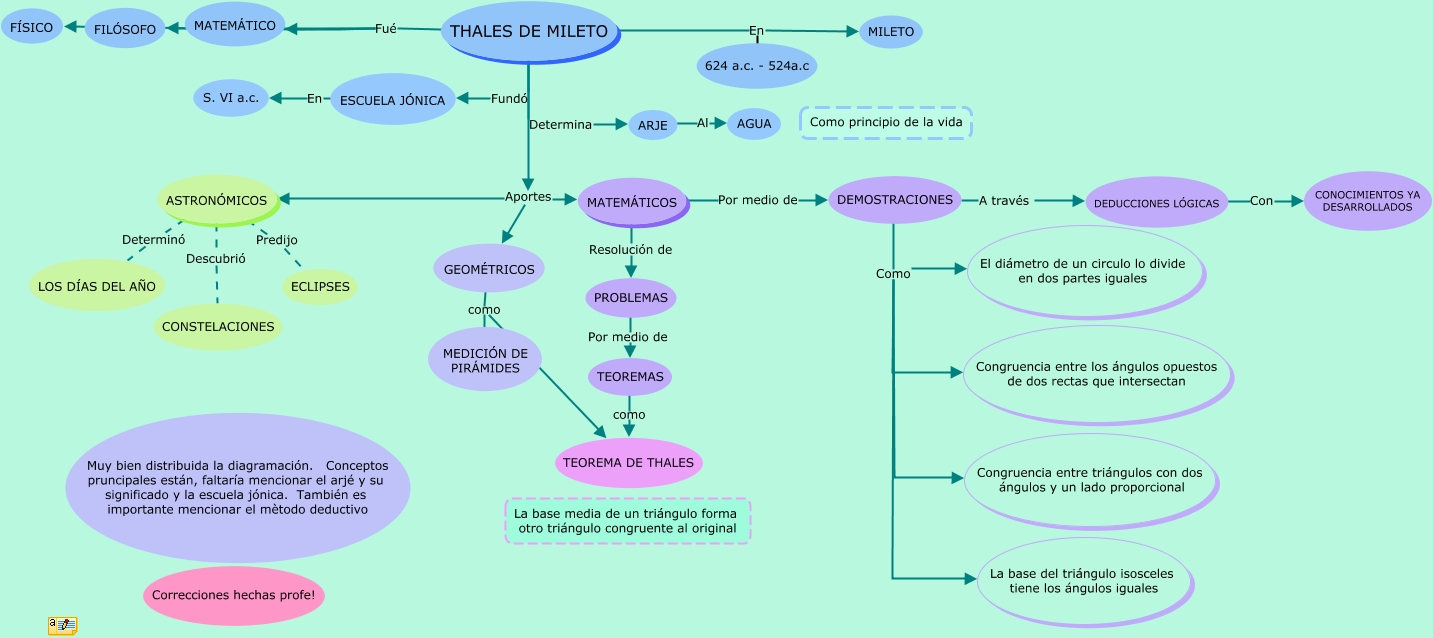 Este Cmap, tiene información relacionada con: THALES, THALES DE MILETO Aportes GEOMÉTRICOS, DEDUCCIONES LÓGICAS Con CONOCIMIENTOS YA DESARROLLADOS, THALES DE MILETO Fué FILÓSOFO, GEOMÉTRICOS como MEDICIÓN DE PIRÁMIDES, THALES DE MILETO En 624 a.c. - 524a.c, MATEMÁTICOS Por medio de DEMOSTRACIONES, MATEMÁTICOS Resolución de PROBLEMAS, GEOMÉTRICOS como TEOREMA DE THALES, DEMOSTRACIONES Como El diámetro de un circulo lo divide en dos partes iguales, ARJE Al AGUA, PROBLEMAS Por medio de TEOREMAS, THALES DE MILETO Aportes ASTRONÓMICOS, TEOREMAS como TEOREMA DE THALES, THALES DE MILETO Fué FÍSICO, THALES DE MILETO Determina ARJE, DEMOSTRACIONES Como Congruencia entre los ángulos opuestos de dos rectas que intersectan, ESCUELA JÓNICA En S. VI a.c., THALES DE MILETO Fundó ESCUELA JÓNICA, THALES DE MILETO En MILETO, DEMOSTRACIONES A través DEDUCCIONES LÓGICAS