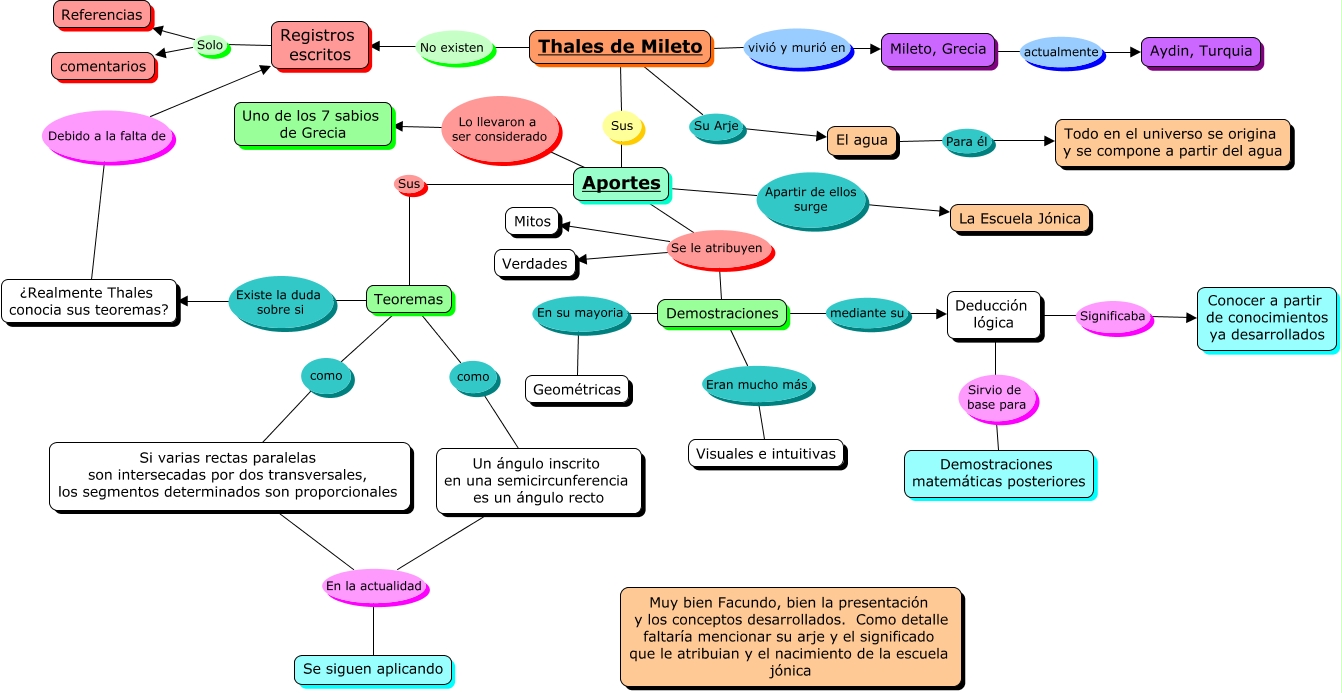 Este Cmap, tiene información relacionada con: Thales de Mileto, Thales de Mileto No existen Registros escritos, Aportes Se le atribuyen Demostraciones, Thales de Mileto vivió y murió en Mileto, Grecia, Un ángulo inscrito en una semicircunferencia es un ángulo recto En la actualidad Se siguen aplicando, Thales de Mileto Su Arje El agua, ¿Realmente Thales conocia sus teoremas? Debido a la falta de Registros escritos, Deducción lógica Sirvio de base para Demostraciones matemáticas posteriores, Demostraciones Eran mucho más Visuales e intuitivas, Si varias rectas paralelas son intersecadas por dos transversales, los segmentos determinados son proporcionales En la actualidad Se siguen aplicando, Deducción lógica Significaba Conocer a partir de conocimientos ya desarrollados, Teoremas como Si varias rectas paralelas son intersecadas por dos transversales, los segmentos determinados son proporcionales, Aportes Lo llevaron a ser considerado Uno de los 7 sabios de Grecia, Aportes Apartir de ellos surge La Escuela Jónica, Aportes Se le atribuyen Mitos, Demostraciones En su mayoria Geométricas, Aportes Sus Teoremas, Thales de Mileto Sus Aportes, Teoremas Existe la duda sobre si ¿Realmente Thales conocia sus teoremas?, Teoremas como Un ángulo inscrito en una semicircunferencia es un ángulo recto, Mileto, Grecia actualmente Aydin, Turquia