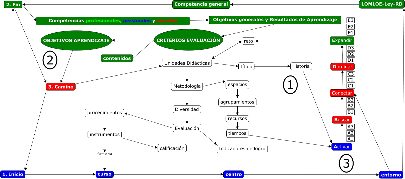 Este Cmap, tiene información relacionada con: 2026 Pizarra UD FP, LOMLOE-Ley-RD Competencia general, reto Unidades Didácticas, entorno Conectar, instrumentos calificación, Objetivos generales y Resultados de Aprendizaje CRITERIOS EVALUACIÓN, centro entorno, Unidades Didácticas título, espacios agrupamientos, agrupamientos recursos, Diversidad Evaluación, tiempos Activar, procedimientos instrumentos, 1. Inicio curso, Metodología Diversidad, Activar Buscar, 1. Inicio 2. Fin, 3. Camino Unidades Didácticas, Metodología espacios, Dominar Expandir, Conectar Dominar
