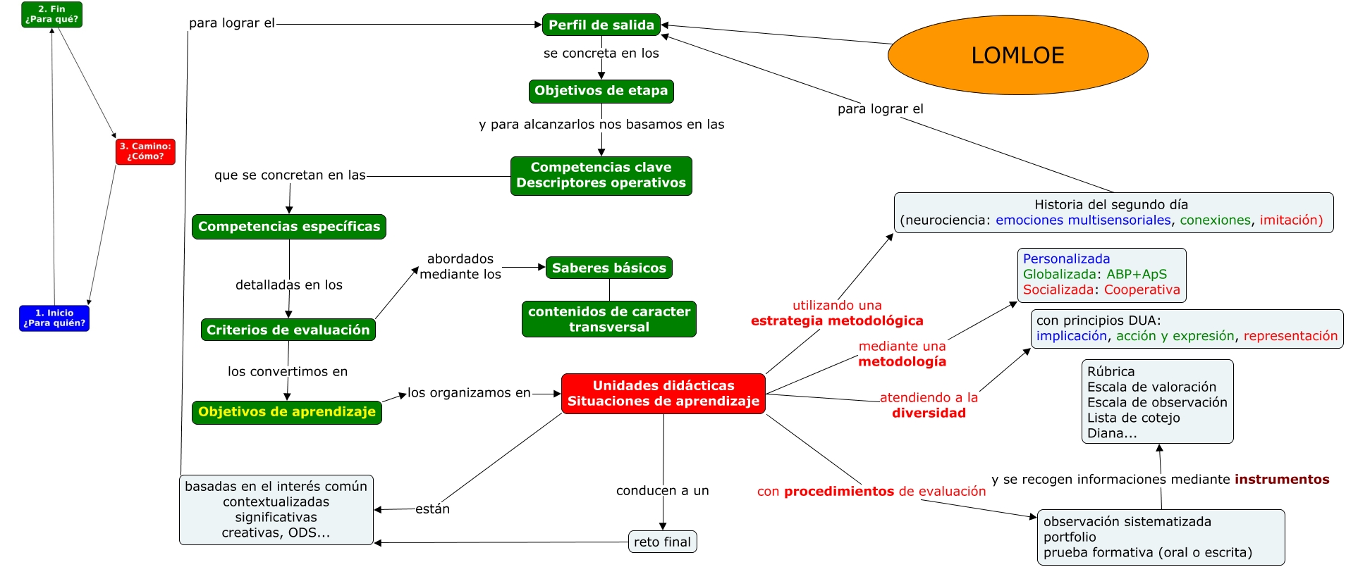 Este Cmap, tiene información relacionada con: 2026 Teoría LOMLOE PS, Criterios de evaluación los convertimos en Objetivos de aprendizaje, observación sistematizada portfolio prueba formativa (oral o escrita) y se recogen informaciones mediante instrumentos Rúbrica Escala de valoración Escala de observación Lista de cotejo Diana..., Saberes básicos contenidos de caracter transversal, Competencias específicas detalladas en los Criterios de evaluación, reto final basadas en el interés común contextualizadas significativas creativas, ODS..., Objetivos de etapa y para alcanzarlos nos basamos en las Competencias clave Descriptores operativos, Perfil de salida se concreta en los Objetivos de etapa, Unidades didácticas Situaciones de aprendizaje con procedimientos de evaluación observación sistematizada portfolio prueba formativa (oral o escrita), basadas en el interés común contextualizadas significativas creativas, ODS... para lograr el Perfil de salida, Unidades didácticas Situaciones de aprendizaje atendiendo a la diversidad con principios DUA: implicación, acción y expresión, representación, Unidades didácticas Situaciones de aprendizaje están basadas en el interés común contextualizadas significativas creativas, ODS..., Objetivos de aprendizaje los organizamos en Unidades didácticas Situaciones de aprendizaje, LOMLOE Perfil de salida, Historia del segundo día (neurociencia: emociones multisensoriales, conexiones, imitación) para lograr el Perfil de salida, Criterios de evaluación abordados mediante los Saberes básicos, Unidades didácticas Situaciones de aprendizaje mediante una metodología Personalizada Globalizada: ABP+ApS Socializada: Cooperativa, Competencias clave Descriptores operativos que se concretan en las Competencias específicas, Unidades didácticas Situaciones de aprendizaje utilizando una estrategia metodológica Historia del segundo día (neurociencia: emociones multisensoriales, conexiones, imitación), Unidades didácticas Situaciones de aprendizaje conducen a un reto final
