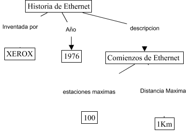 Este Cmap, tiene información relacionada con: Historia Ethernet, Comienzos de Ethernet Distancia Maxima 1Km, Historia de Ethernet descripcion Comienzos de Ethernet, Historia de Ethernet Año 1976, Historia de Ethernet Inventada por XEROX, Comienzos de Ethernet estaciones maximas 100