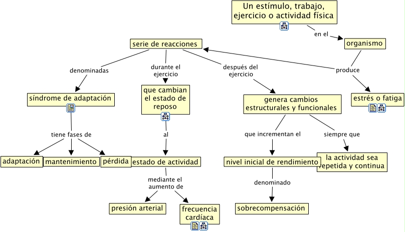 Ley_Selye, síndrome de adaptación tiene fases de pérdida, que cambian el estado de reposo al estado de actividad, estado de actividad mediante el aumento de frecuencia cardíaca, genera cambios estructurales y funcionales siempre que la actividad sea repetida y continua, serie de reacciones denominadas síndrome de adaptación, síndrome de adaptación tiene fases de adaptación, nivel inicial de rendimiento denominado sobrecompensación, serie de reacciones durante el ejercicio que cambian el estado de reposo, organismo produce serie de reacciones, estado de actividad mediante el aumento de presión arterial