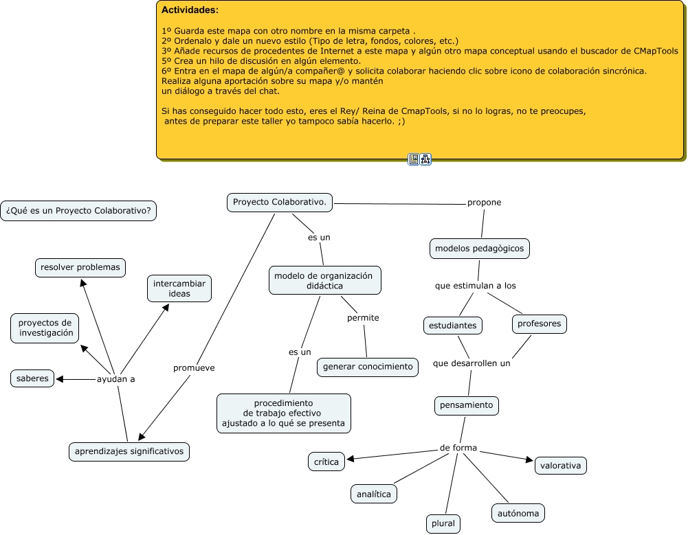 This Concept Map, created with IHMC CmapTools, has information related to: qué son los proyectos colaborativos, pensamiento de forma crítica, modelo de organización didáctica permite generar conocimiento, modelos pedagògicos que estimulan a los profesores, aprendizajes significativos ayudan a saberes, pensamiento de forma autónoma, aprendizajes significativos ayudan a intercambiar ideas, pensamiento de forma plural, Proyecto Colaborativo. propone modelos pedagògicos, Proyecto Colaborativo. promueve aprendizajes significativos, modelos pedagògicos que estimulan a los estudiantes, profesores que desarrollen un pensamiento, Proyecto Colaborativo. es un modelo de organización didáctica, pensamiento de forma analítica, modelo de organización didáctica es un procedimiento de trabajo efectivo ajustado a lo qué se presenta, estudiantes que desarrollen un pensamiento, pensamiento de forma valorativa, aprendizajes significativos ayudan a proyectos de investigación, aprendizajes significativos ayudan a resolver problemas