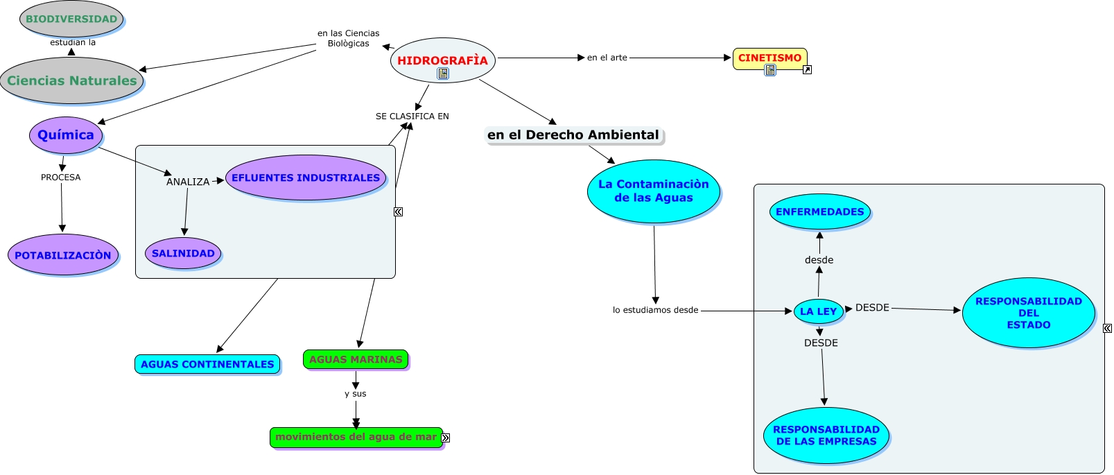 Este mapa conceptual tiene información relacionada a: HIDROGRAFÌA, HIDROGRAFÌA en el Derecho Ambiental La Contaminaciòn de las Aguas, AGUAS MARINAS y sus ????, LA LEY desde ENFERMEDADES, HIDROGRAFÌA SE CLASIFICA EN AGUAS MARINAS, Química ANALIZA EFLUENTES INDUSTRIALES, LA LEY DESDE RESPONSABILIDAD DEL ESTADO, Ciencias Naturales estudian la BIODIVERSIDAD, La Contaminaciòn de las Aguas lo estudiamos desde LA LEY, HIDROGRAFÌA SE CLASIFICA EN AGUAS CONTINENTALES, Ciencias Naturales estudian la BIODIVERSIDAD