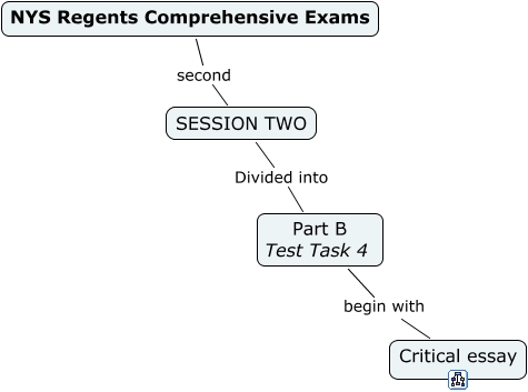 This Concept Map, created with IHMC CmapTools, has information related to: NYS Regents Comprehensive Exams-session two-part b, SESSION TWO Divided into Part B Test Task 4, NYS Regents Comprehensive Exams second SESSION TWO, Part B Test Task 4 begin with Critical essay
