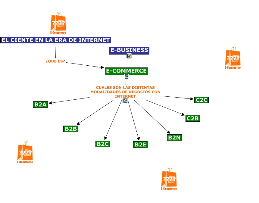 Este mapa conceptual tiene información relacionada a: E-COMMERCE, E-COMMERCE CUALES SON LAS DISTINTAS MODALIDADES DE NEGOCIOS CON INTERNET B2C, E-COMMERCE CUALES SON LAS DISTINTAS MODALIDADES DE NEGOCIOS CON INTERNET C2B, EL CIENTE EN LA ERA DE INTERNET ¿QUÉ ES? E-COMMERCE, E-COMMERCE CUALES SON LAS DISTINTAS MODALIDADES DE NEGOCIOS CON INTERNET B2E, E-COMMERCE CUALES SON LAS DISTINTAS MODALIDADES DE NEGOCIOS CON INTERNET B2A, E-COMMERCE CUALES SON LAS DISTINTAS MODALIDADES DE NEGOCIOS CON INTERNET B2N, E-COMMERCE CUALES SON LAS DISTINTAS MODALIDADES DE NEGOCIOS CON INTERNET C2C, E-COMMERCE CUALES SON LAS DISTINTAS MODALIDADES DE NEGOCIOS CON INTERNET B2B