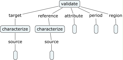 This Concept Map, created with IHMC CmapTools, has information related to: validate template, validate region, validate reference characterize, validate target characterize, characterize source, validate period, validate attribute, characterize source