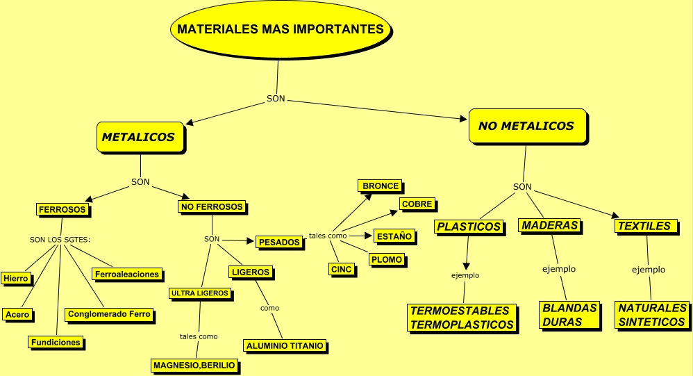 Este mapa conceptual tiene información relacionada a: K@REN Y AID@, MATERIALES MAS IMPORTANTES SON METALICOS, MADERAS ejemplo BLANDAS DURAS, FERROSOS SON LOS SGTES: Hierro, FERROSOS SON LOS SGTES: Fundiciones, NO FERROSOS SON PESADOS, FERROSOS SON LOS SGTES: Ferroaleaciones, LIGEROS como ALUMINIO TITANIO, NO METALICOS SON MADERAS, NO FERROSOS SON LIGEROS, PESADOS tales como PLOMO