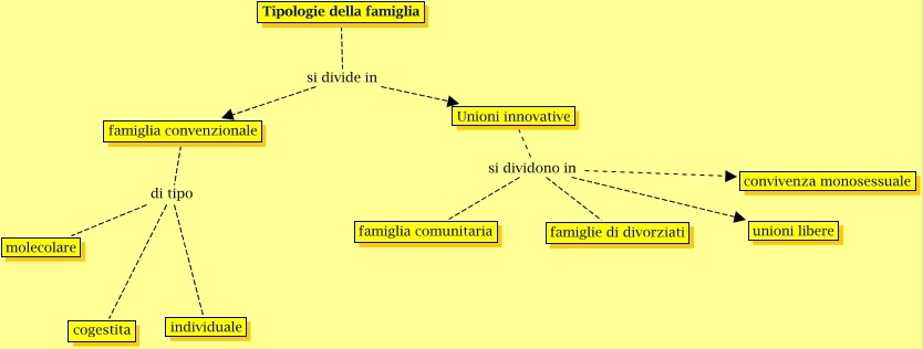 Questa Cmap, creata con IHMC CmapTools, contiene informazioni relative a: tipologie famiglie, Unioni innovative si dividono in unioni libere, Tipologie della famiglia si divide in Unioni innovative, Unioni innovative si dividono in famiglie di divorziati, famiglia convenzionale di tipo individuale, Unioni innovative si dividono in famiglia comunitaria, Unioni innovative si dividono in convivenza monosessuale, famiglia convenzionale di tipo cogestita, Tipologie della famiglia si divide in famiglia convenzionale, famiglia convenzionale di tipo molecolare