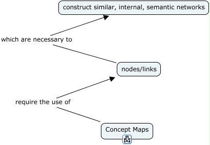 This Concept Map, created with IHMC CmapTools, has information related to: Concept Maps, nodes/links which are necessary to construct similar, internal, semantic networks, Concept Maps require the use of nodes/links