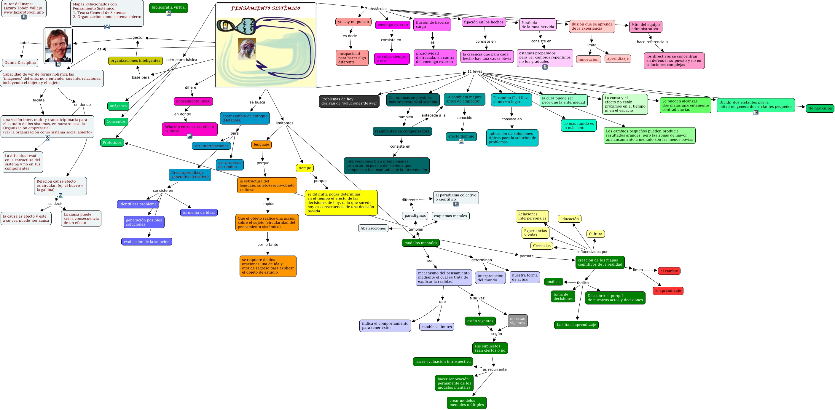 Este Cmap, tiene información relacionada con: Pensamiento Sistémico, PENSAMIENTO SISTÉMICO limitantes tiempo, PENSAMIENTO SISTÉMICO 11 leyes No hay culpa, enemigo externo consiste en se culpa siempre a otro, Que el objeto realice una acción sobre el sujeto (circularidad del pensamiento sistémico) por lo tanto se requiere de dos oraciones una de ida y otra de regreso para explicar el objeto de estudio, creación de los mapas cognitivos de la realidad facilita facilita el aprendizaje, creación de los mapas cognitivos de la realidad limita el cambio, PENSAMIENTO SISTÉMICO 7 obstáculos yo soy mi puesto, organizaciones inteligentes gestor PETER SENGE, lenguaje porque la estructura del lenguaje: sujeto+verbo+objeto es lineal, PENSAMIENTO SISTÉMICO 11 leyes la cura puede ser peor que la enfermedad, creación de los mapas cognitivos de la realidad influenciados por Cultura, crear cambio de enfoque (Metanoia) para ver interrelaciones, La conducta mejora antes de empeorar conocido efecto dominó, PENSAMIENTO SISTÉMICO base para organizaciones inteligentes, fijación en los hechos consiste en la creencia que para cada hecho hay una causa obvia, Relación causa-efecto es circular. (ej. el huevo y la gallina) es decir la causa es efecto y éste a su vez puede ser causa, no están vigentes según sus supuestos sean ciertos o no, realimentación compensadora antecede a la La conducta mejora antes de empeorar, PENSAMIENTO SISTÉMICO 11 leyes El camino fácil lleva al mismo lugar, Capacidad de ver de forma holística las "imágenes" del entorno y entender sus interrelaciones, incluyendo el objeto y el sujeto facilita una visión inter, multi y transdiciplinaria para el estudio de los sistemas, en nuestro caso la Organización empresarial (ver la organización como sistema social abierto)