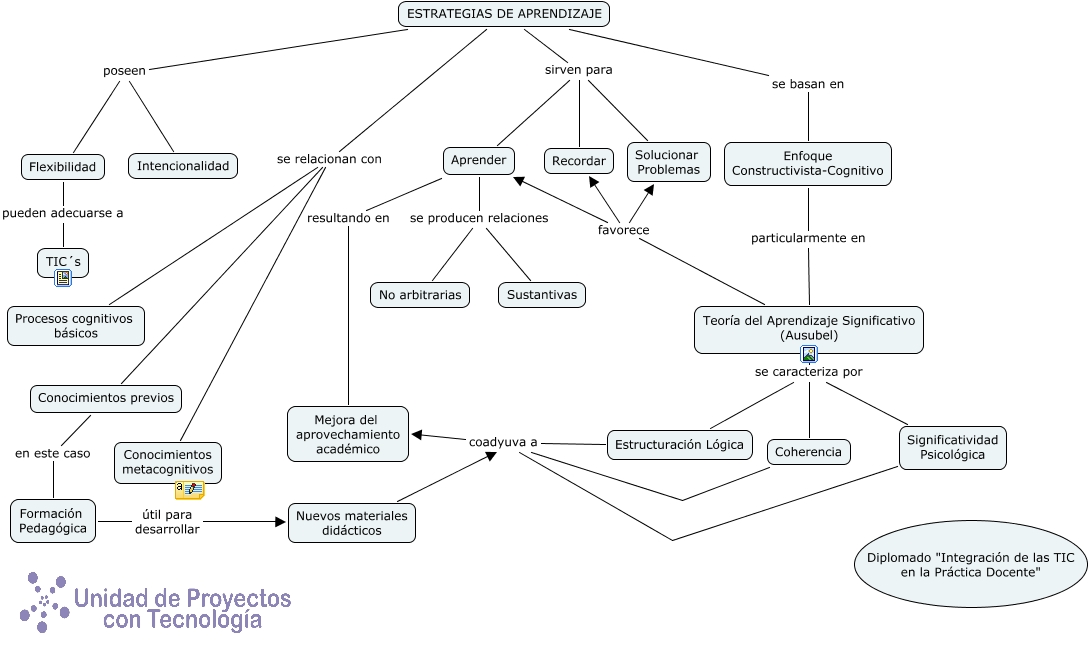 Este Cmap, tiene información relacionada con: estrategias de aprendizaje, Teoría del Aprendizaje Significativo (Ausubel) se caracteriza por Significatividad Psicológica, ESTRATEGIAS DE APRENDIZAJE se relacionan con Conocimientos metacognitivos, Aprender se producen relaciones Sustantivas, Teoría del Aprendizaje Significativo (Ausubel) favorece Solucionar Problemas, Teoría del Aprendizaje Significativo (Ausubel) se caracteriza por Estructuración Lógica, ESTRATEGIAS DE APRENDIZAJE poseen Flexibilidad, ESTRATEGIAS DE APRENDIZAJE poseen Intencionalidad, ESTRATEGIAS DE APRENDIZAJE sirven para Solucionar Problemas, Teoría del Aprendizaje Significativo (Ausubel) se caracteriza por Coherencia, ESTRATEGIAS DE APRENDIZAJE se relacionan con Conocimientos previos, Aprender se producen relaciones No arbitrarias, Estructuración Lógica coadyuva a Mejora del aprovechamiento académico, Significatividad Psicológica coadyuva a Mejora del aprovechamiento académico, Nuevos materiales didácticos coadyuva a Mejora del aprovechamiento académico, ESTRATEGIAS DE APRENDIZAJE sirven para Aprender, Aprender resultando en Mejora del aprovechamiento académico, Teoría del Aprendizaje Significativo (Ausubel) favorece Recordar, Enfoque Constructivista-Cognitivo particularmente en Teoría del Aprendizaje Significativo (Ausubel), Conocimientos previos en este caso Formación Pedagógica, Formación Pedagógica útil para desarrollar Nuevos materiales didácticos