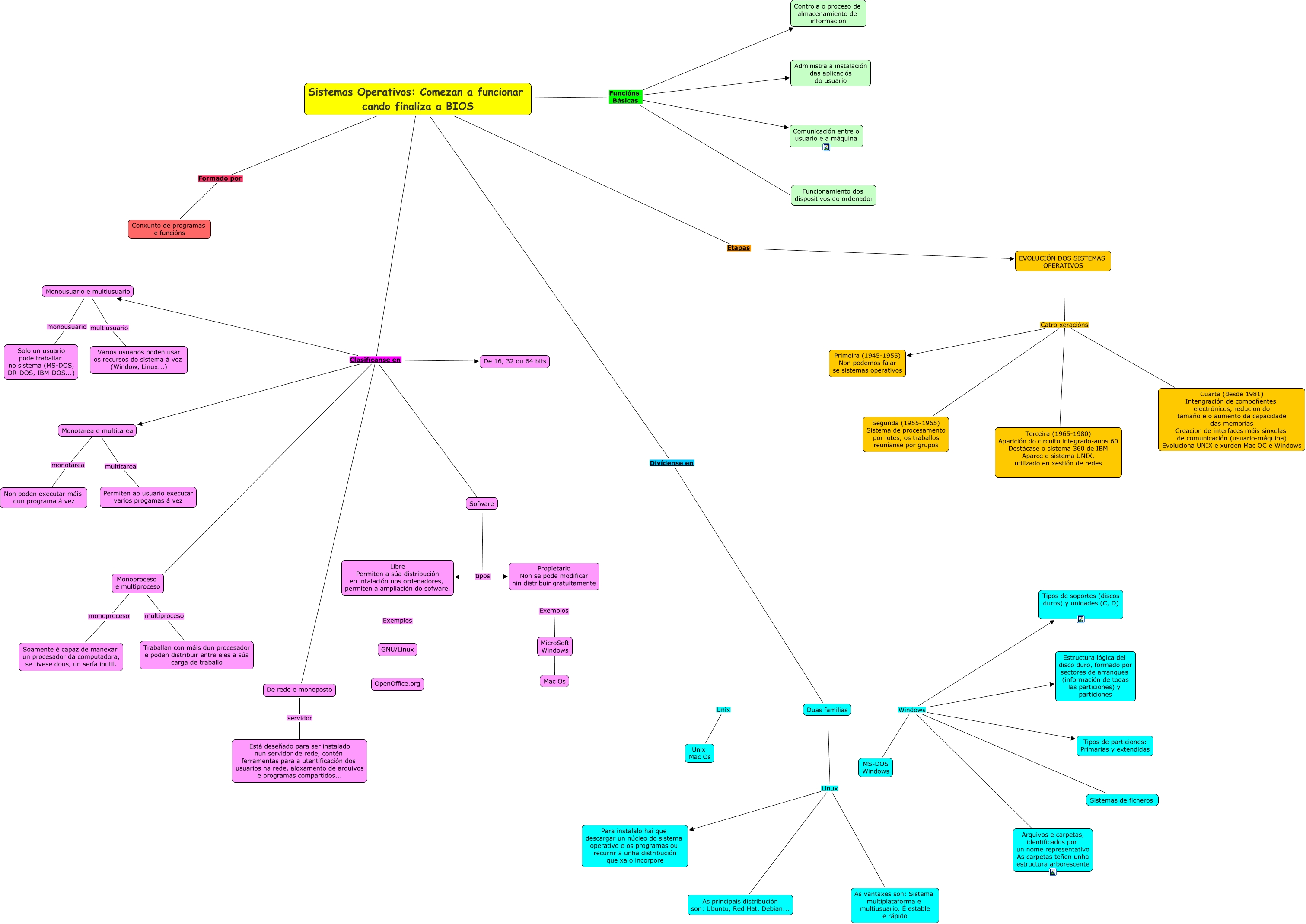 Este Cmap, tiene información relacionada con: Mapa Conceptual tic con recursos, Monoproceso e multiproceso monoproceso Soamente é capaz de manexar un procesador da computadora, se tivese dous, un sería inutil., Monotarea e multitarea multitarea Permiten ao usuario executar varios progamas á vez, Sistemas Operativos: Comezan a funcionar cando finaliza a BIOS Clasifícanse en Monotarea e multitarea, Duas familias Windows Tipos de soportes (discos duros) y unidades (C, D), Duas familias Unix Unix Mac Os, EVOLUCIÓN DOS SISTEMAS OPERATIVOS Catro xeracións Segunda (1955-1965) Sistema de procesamento por lotes, os traballos reuníanse por grupos, Duas familias Windows Estructura lógica del disco duro, formado por sectores de arranques (información de todas las particiones) y particiones, EVOLUCIÓN DOS SISTEMAS OPERATIVOS Catro xeracións Terceira (1965-1980) Aparición do circuito integrado-anos 60 Destácase o sistema 360 de IBM Aparce o sistema UNIX, utilizado en xestión de redes, Libre Permiten a súa distribución en intalación nos ordenadores, permiten a ampliación do sofware. Exemplos GNU/Linux, Sofware tipos Libre Permiten a súa distribución en intalación nos ordenadores, permiten a ampliación do sofware., Sistemas Operativos: Comezan a funcionar cando finaliza a BIOS Funcións Básicas Administra a instalación das aplicaciós do usuario, Sistemas Operativos: Comezan a funcionar cando finaliza a BIOS Clasifícanse en De rede e monoposto, Sistemas Operativos: Comezan a funcionar cando finaliza a BIOS Formado por Conxunto de programas e funcións, Sistemas Operativos: Comezan a funcionar cando finaliza a BIOS Etapas EVOLUCIÓN DOS SISTEMAS OPERATIVOS, Monousuario e multiusuario multiusuario Varios usuarios poden usar os recursos do sistema á vez (Window, Linux...), EVOLUCIÓN DOS SISTEMAS OPERATIVOS Catro xeracións Primeira (1945-1955) Non podemos falar se sistemas operativos, Duas familias Windows Tipos de particiones: Primarias y extendidas, Monousuario e multiusuario monousuario Solo un usuario pode traballar no sistema (MS-DOS, DR-DOS, IBM-DOS...), Duas familias Windows Arquivos e carpetas, identificados por un nome representativo As carpetas teñen unha estructura arborescente, Propietario Non se pode modificar nin distribuir gratuitamente Exemplos MicroSoft Windows