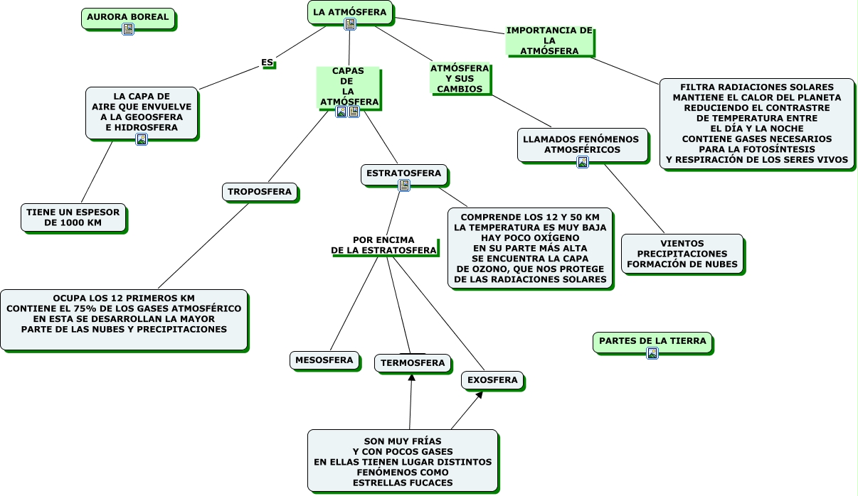 Este Cmap, tiene información relacionada con: ATMÓSFERA, ESTRATOSFERA POR ENCIMA DE LA ESTRATOSFERA EXOSFERA, SON MUY FRÍAS Y CON POCOS GASES EN ELLAS TIENEN LUGAR DISTINTOS FENÓMENOS COMO ESTRELLAS FUCACES ???? ????, LA ATMÓSFERA ES LA CAPA DE AIRE QUE ENVUELVE A LA GEOOSFERA E HIDROSFERA, ESTRATOSFERA POR ENCIMA DE LA ESTRATOSFERA MESOSFERA, TROPOSFERA ???? OCUPA LOS 12 PRIMEROS KM CONTIENE EL 75% DE LOS GASES ATMOSFÉRICO EN ESTA SE DESARROLLAN LA MAYOR PARTE DE LAS NUBES Y PRECIPITACIONES, LA ATMÓSFERA ATMÓSFERA Y SUS CAMBIOS LLAMADOS FENÓMENOS ATMOSFÉRICOS, ESTRATOSFERA POR ENCIMA DE LA ESTRATOSFERA TERMOSFERA, ESTRATOSFERA ???? COMPRENDE LOS 12 Y 50 KM LA TEMPERATURA ES MUY BAJA HAY POCO OXÍGENO EN SU PARTE MÁS ALTA SE ENCUENTRA LA CAPA DE OZONO, QUE NOS PROTEGE DE LAS RADIACIONES SOLARES, LA ATMÓSFERA CAPAS DE LA ATMÓSFERA TROPOSFERA, LLAMADOS FENÓMENOS ATMOSFÉRICOS ???? VIENTOS PRECIPITACIONES FORMACIÓN DE NUBES, SON MUY FRÍAS Y CON POCOS GASES EN ELLAS TIENEN LUGAR DISTINTOS FENÓMENOS COMO ESTRELLAS FUCACES ???? EXOSFERA, LA ATMÓSFERA IMPORTANCIA DE LA ATMÓSFERA FILTRA RADIACIONES SOLARES MANTIENE EL CALOR DEL PLANETA REDUCIENDO EL CONTRASTRE DE TEMPERATURA ENTRE EL DÍA Y LA NOCHE CONTIENE GASES NECESARIOS PARA LA FOTOSÍNTESIS Y RESPIRACIÓN DE LOS SERES VIVOS, LA ATMÓSFERA CAPAS DE LA ATMÓSFERA ESTRATOSFERA, LA CAPA DE AIRE QUE ENVUELVE A LA GEOOSFERA E HIDROSFERA ???? TIENE UN ESPESOR DE 1000 KM