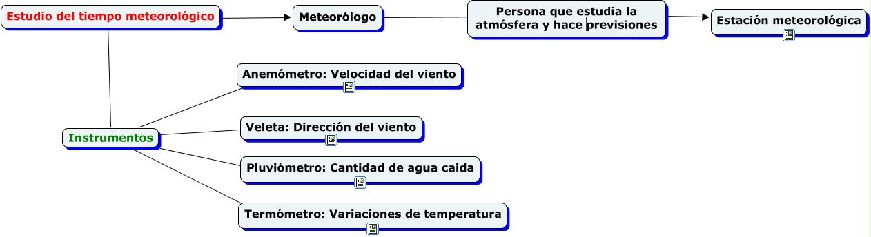 Este Cmap, tiene información relacionada con: C. Medio 1-2, Instrumentos ???? Pluviómetro: Cantidad de agua caida, Instrumentos ???? Anemómetro: Velocidad del viento, Instrumentos ???? Termómetro: Variaciones de temperatura, Estudio del tiempo meteorológico ???? Meteorólogo, Persona que estudia la atmósfera y hace previsiones ???? Estación meteorológica, Meteorólogo ???? Persona que estudia la atmósfera y hace previsiones, Instrumentos ???? Veleta: Dirección del viento, Estudio del tiempo meteorológico ???? Instrumentos
