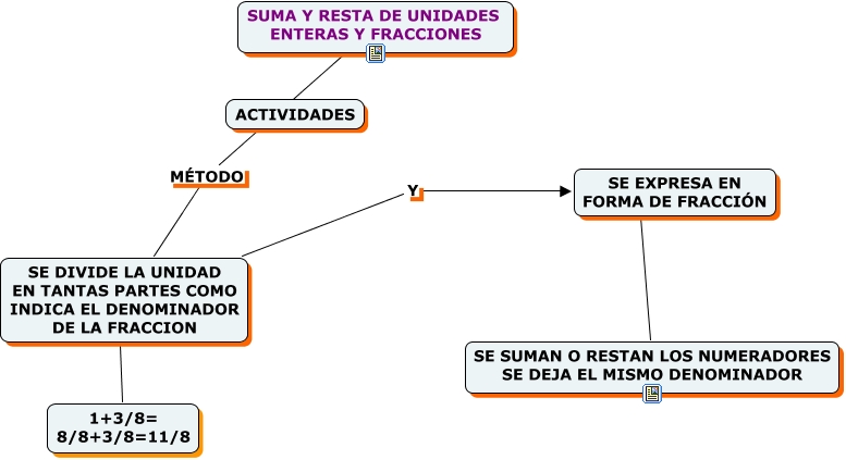 Este Cmap, tiene información relacionada con: SUMA Y RESTA DE UNIDADES Y FRACCIONES, SUMA Y RESTA DE UNIDADES ENTERAS Y FRACCIONES MÉTODO SE DIVIDE LA UNIDAD EN TANTAS PARTES COMO INDICA EL DENOMINADOR DE LA FRACCION, SE DIVIDE LA UNIDAD EN TANTAS PARTES COMO INDICA EL DENOMINADOR DE LA FRACCION Y SE EXPRESA EN FORMA DE FRACCIÓN, SE DIVIDE LA UNIDAD EN TANTAS PARTES COMO INDICA EL DENOMINADOR DE LA FRACCION ???? 1+3/8= 8/8+3/8=11/8, SE EXPRESA EN FORMA DE FRACCIÓN ???? SE SUMAN O RESTAN LOS NUMERADORES SE DEJA EL MISMO DENOMINADOR