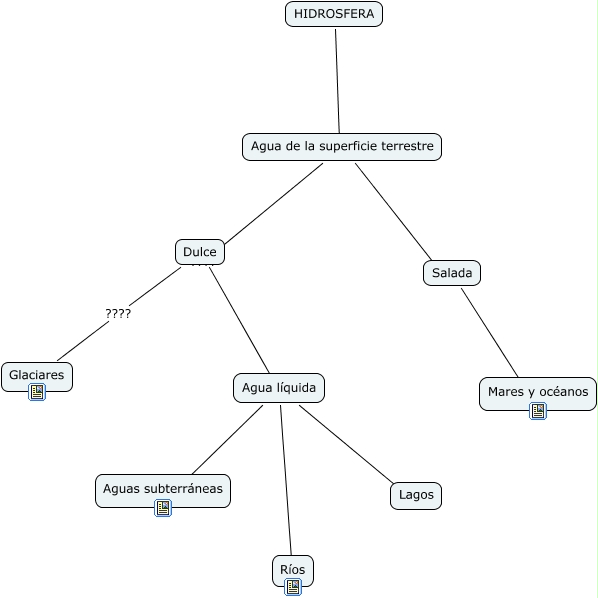Este Cmap, tiene información relacionada con: Hidrosfera, HIDROSFERA ???? Agua de la superficie terrestre, Agua de la superficie terrestre ???? Dulce, Agua líquida ???? Ríos, Agua líquida ???? Aguas subterráneas, Dulce ???? Agua líquida, Salada ???? Mares y océanos, Agua líquida ???? Lagos, Dulce ???? Glaciares, Agua de la superficie terrestre ???? Salada