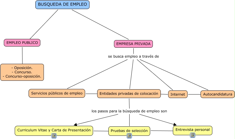 Este Cmap, tiene información relacionada con: BUSQUEDA DE EMPLEO, EMPRESA PRIVADA se busca empleo a través de Servicios públicos de empleo, EMPRESA PRIVADA se busca empleo a través de Entidades privadas de colocación, Pruebas de selección ???? Entrevista personal, EMPRESA PRIVADA se busca empleo a través de Autocandidatura, Entidades privadas de colocación los pasos para la búsqueda de empleo son Entrevista personal, EMPLEO PUBLICO ???? - Oposición. - Concurso. - Concurso-oposición., Curriculum Vitae y Carta de Presentación ???? Pruebas de selección, Servicios públicos de empleo ???? Entidades privadas de colocación, Entidades privadas de colocación los pasos para la búsqueda de empleo son Pruebas de selección, Internet ???? Autocandidatura, Internet ???? Entidades privadas de colocación, Entidades privadas de colocación los pasos para la búsqueda de empleo son Curriculum Vitae y Carta de Presentación, EMPRESA PRIVADA se busca empleo a través de Internet, Entidades privadas de colocación ???? ????, BUSQUEDA DE EMPLEO ???? EMPLEO PUBLICO, BUSQUEDA DE EMPLEO ???? EMPRESA PRIVADA