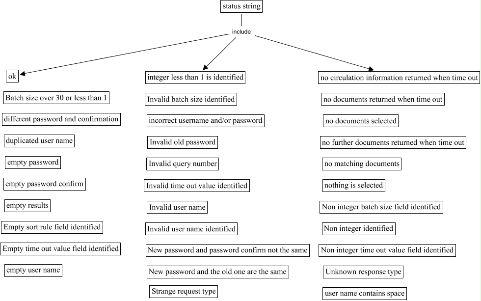 This Concept Map, created with IHMC CmapTools, has information related to: webgate.webpages_status, status string include no circulation information returned when time out, status string include ok, status string include integer less than 1 is identified